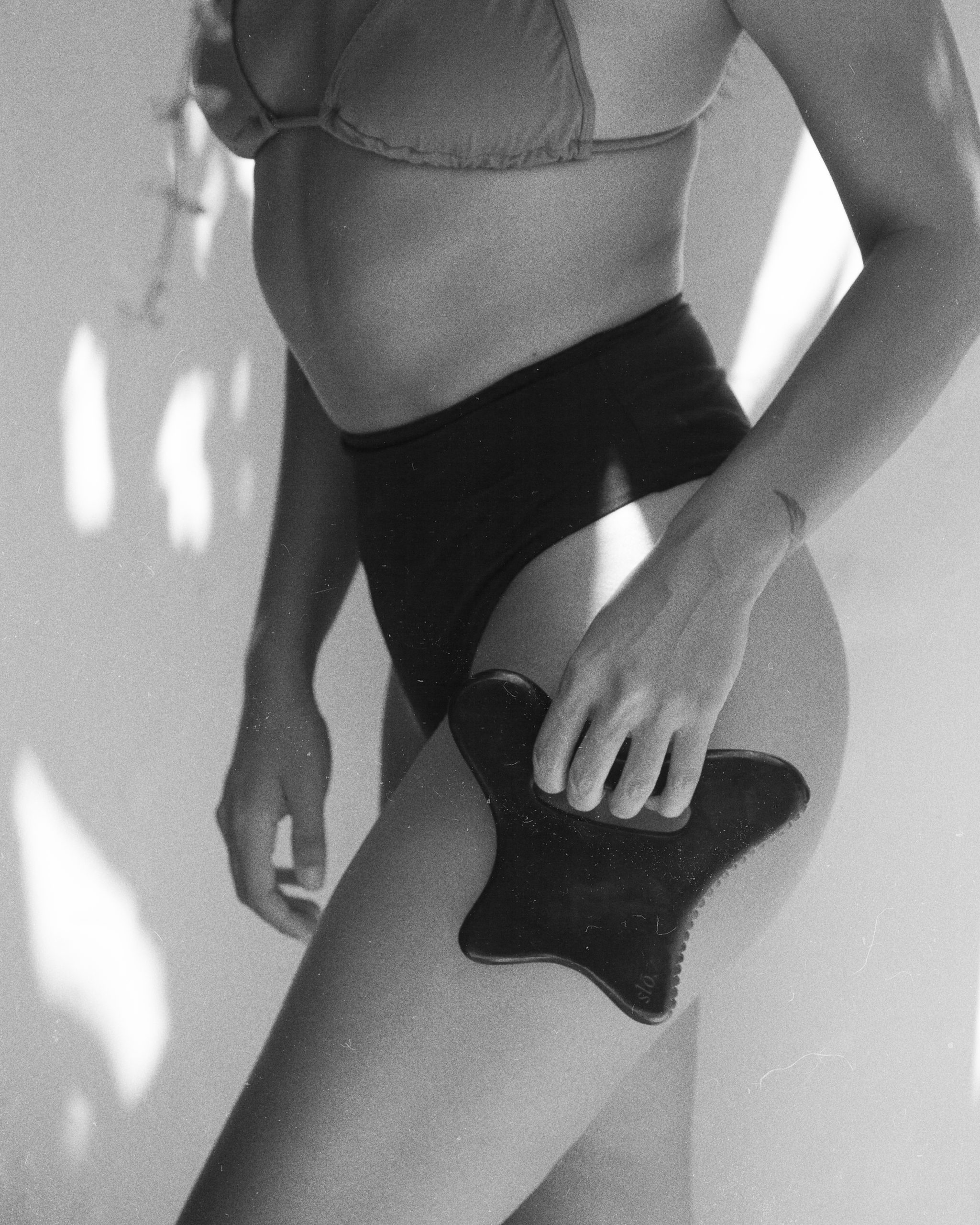 Nanesite obilnu količinu ulja kako bi gua hha lako klizila po vašoj koži. Nanesite još ako je potrebno dok koristite gua sha. Nježno masirajte umjerenim pritiskom u smjeru srca na tijelu. Ponovite pokret 5-10 puta na svakom području. Za poticanje limfne drenaže cijelog tijela, koristite na nogama, trupu, rukama i vratu. Gua Sha se nevjerojatno osjeća kada se zagrije, trljajte ga pod vrućom vodom. Češljasta strana alata uklanja napetost i oslobađa toksine, dok je glatka strana namijenjena “struganju” onoga što se nakon toga oslobodi. Koristite obje strane – prvo češljanu stranu, a zatim glatku stranu.
